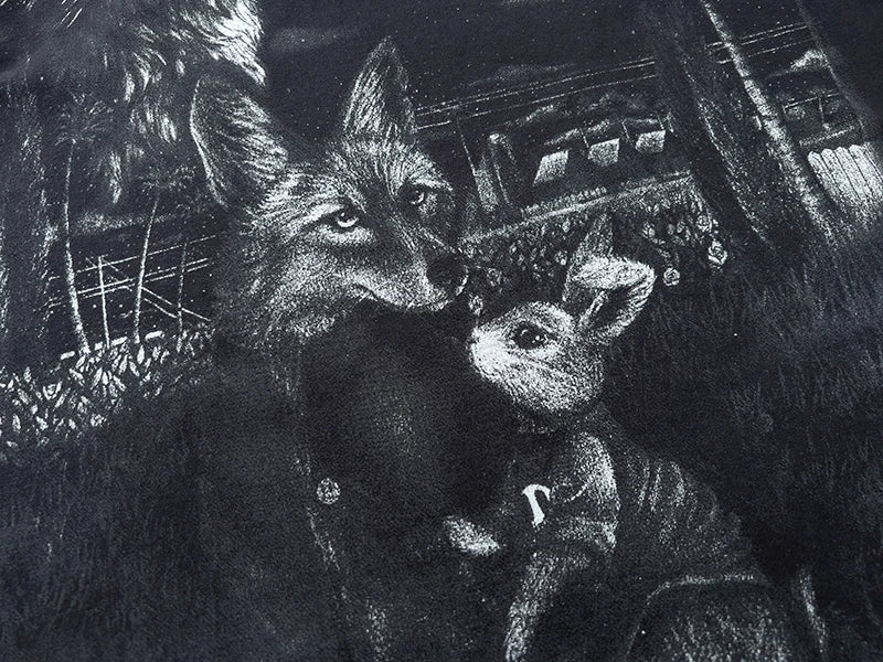 Oversized tee with detailed moonlit wolf print. A bold graphic piece that merges street style with artistic flair. Drew-inspired silhouette.