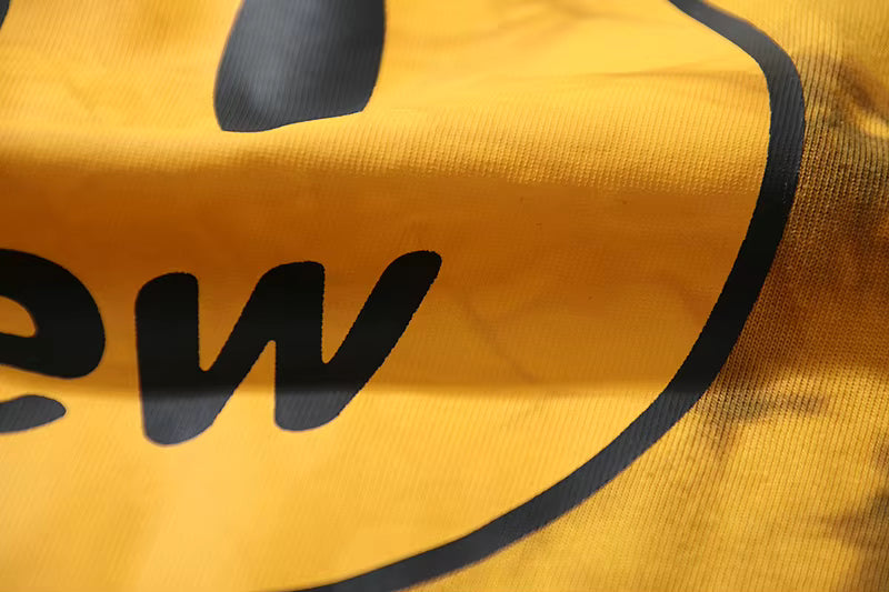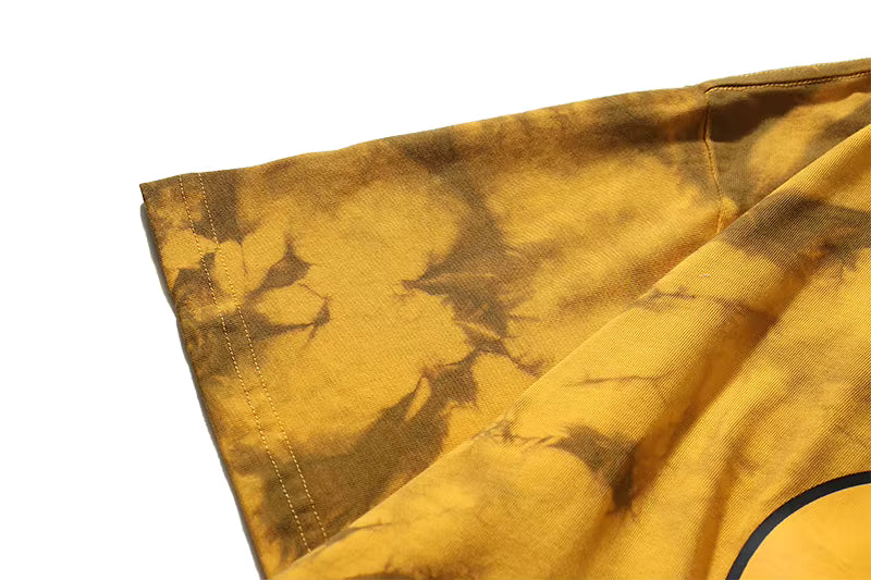 Iconic smiley tee with bold front print over a tie-dye wash. Unisex fit with a soft, casual drape and premium cotton feel.